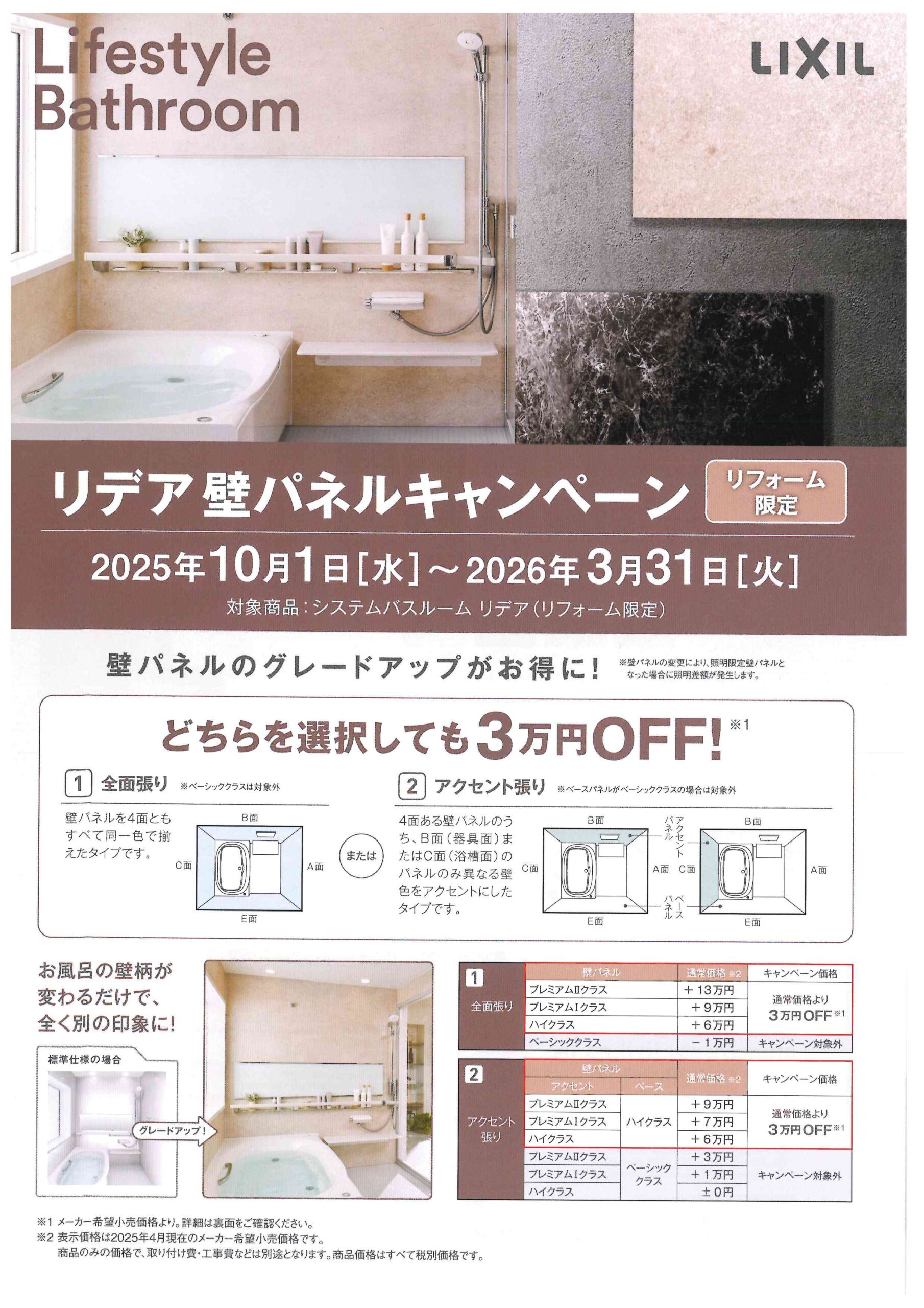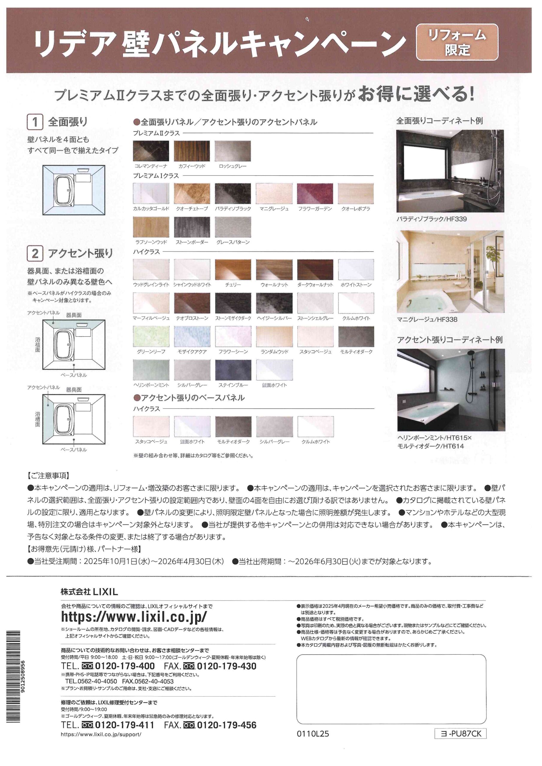 LIXILでは只今「リデア 壁パネルキャンペーン」を実施しております!!