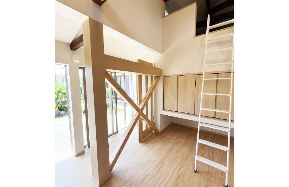 収納にも困らないようロフトも作りました。ロフト下には吊押入を設置し空間を余すことなく利用。