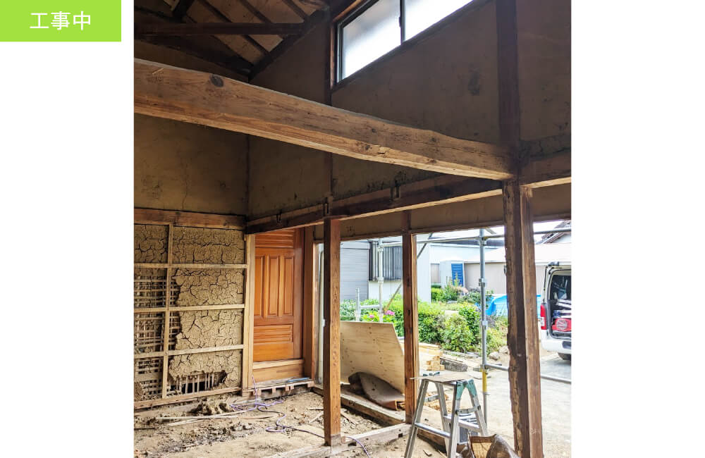 | 工事内容 | 間取り変更、ロフト設置、キッチン設置、フローリング張替、クロス張替、建具交換、収納スペース設置、浴室設置、玄関ドア交換等 |